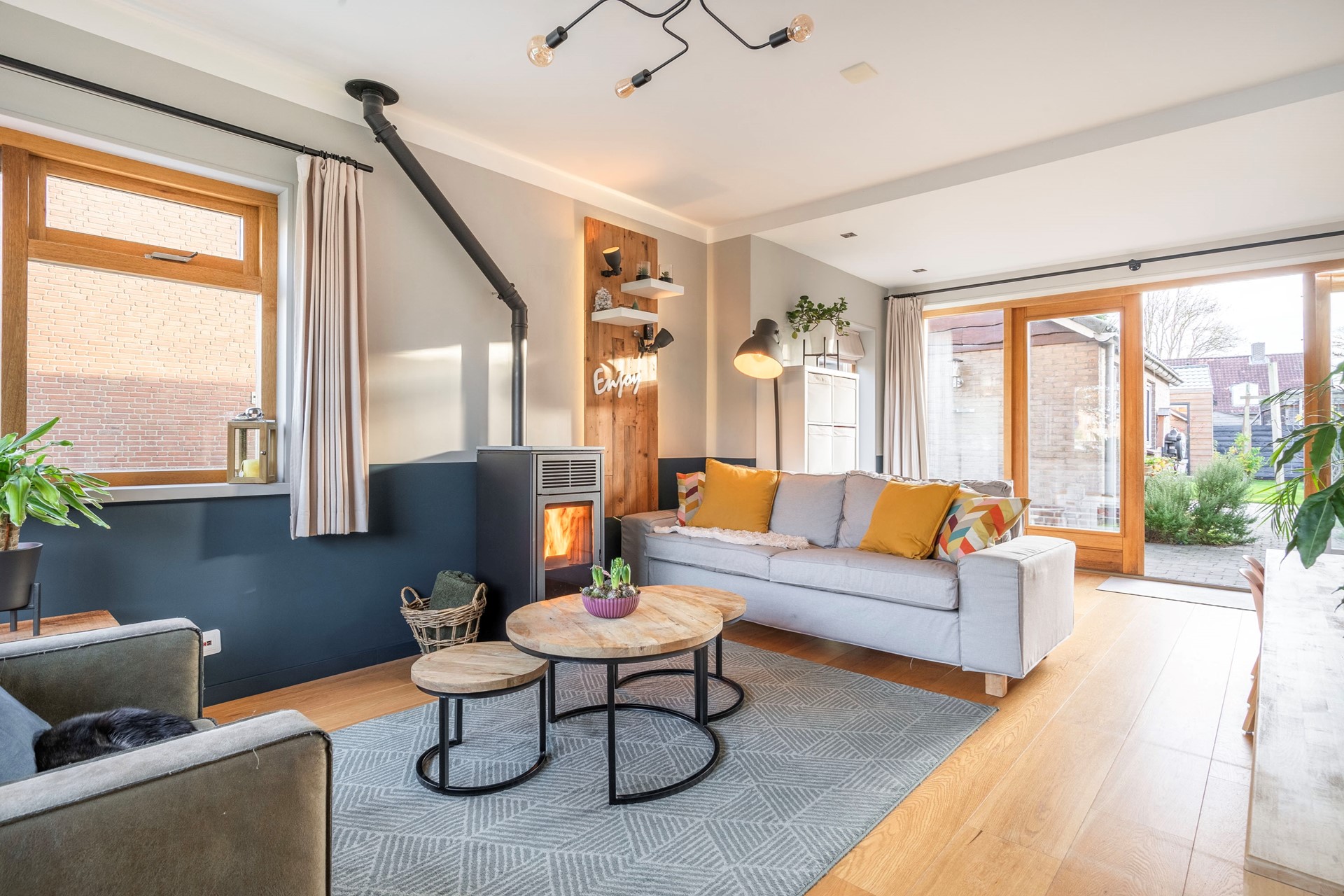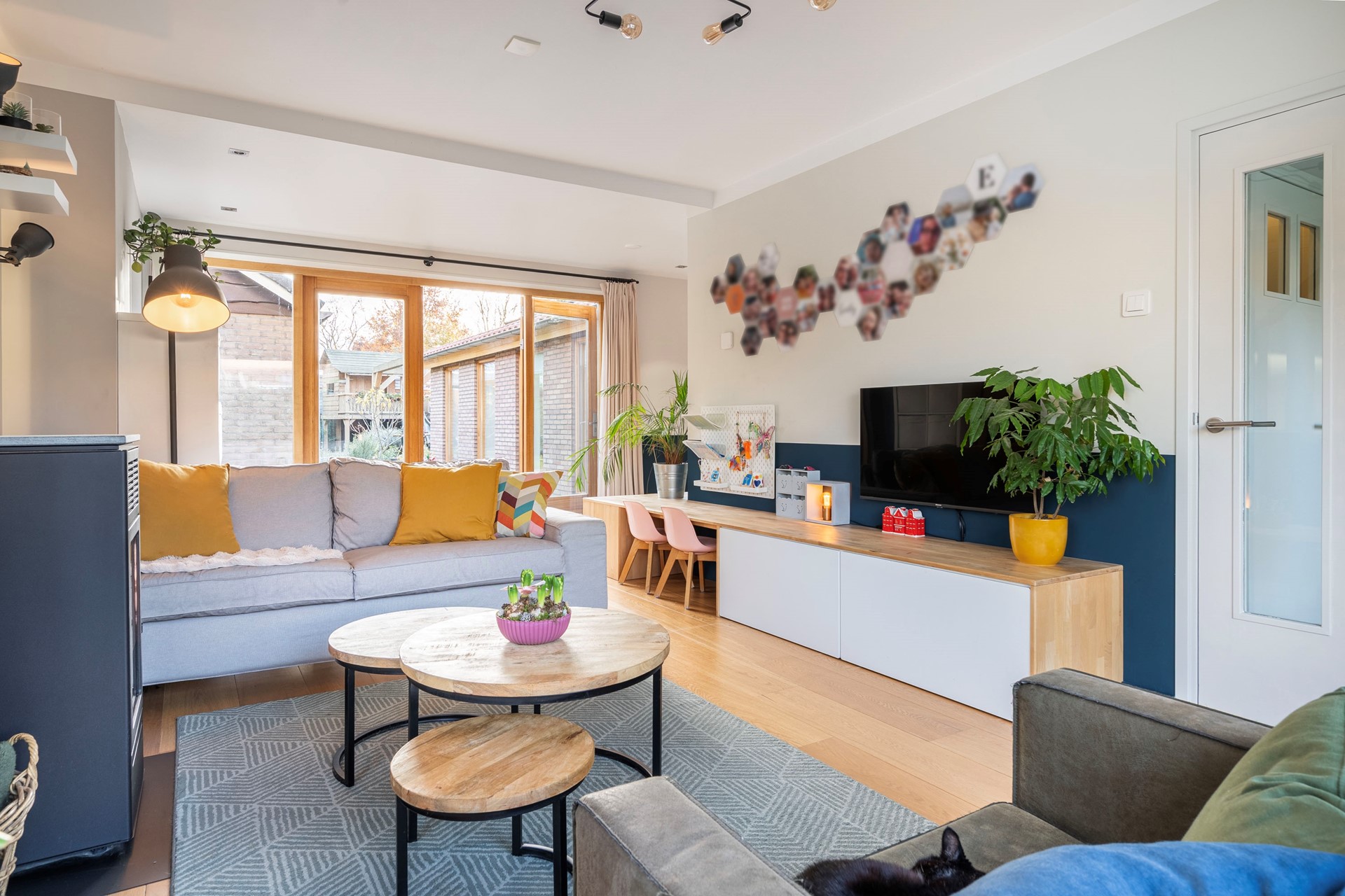 Vanuit de hal kom je in de knusse woonkamer, die aan de achterzijde is uitgebouwd.