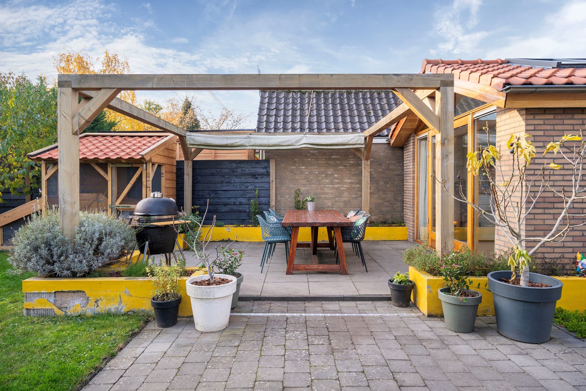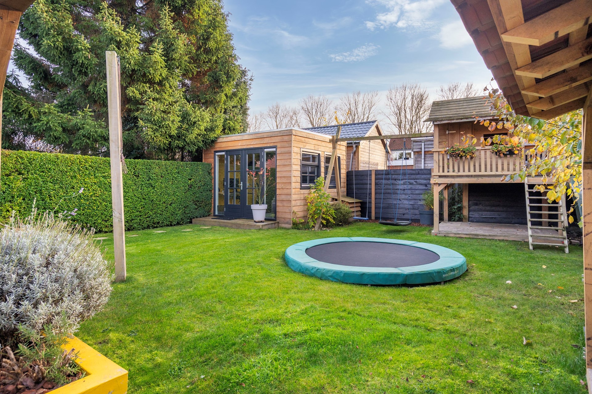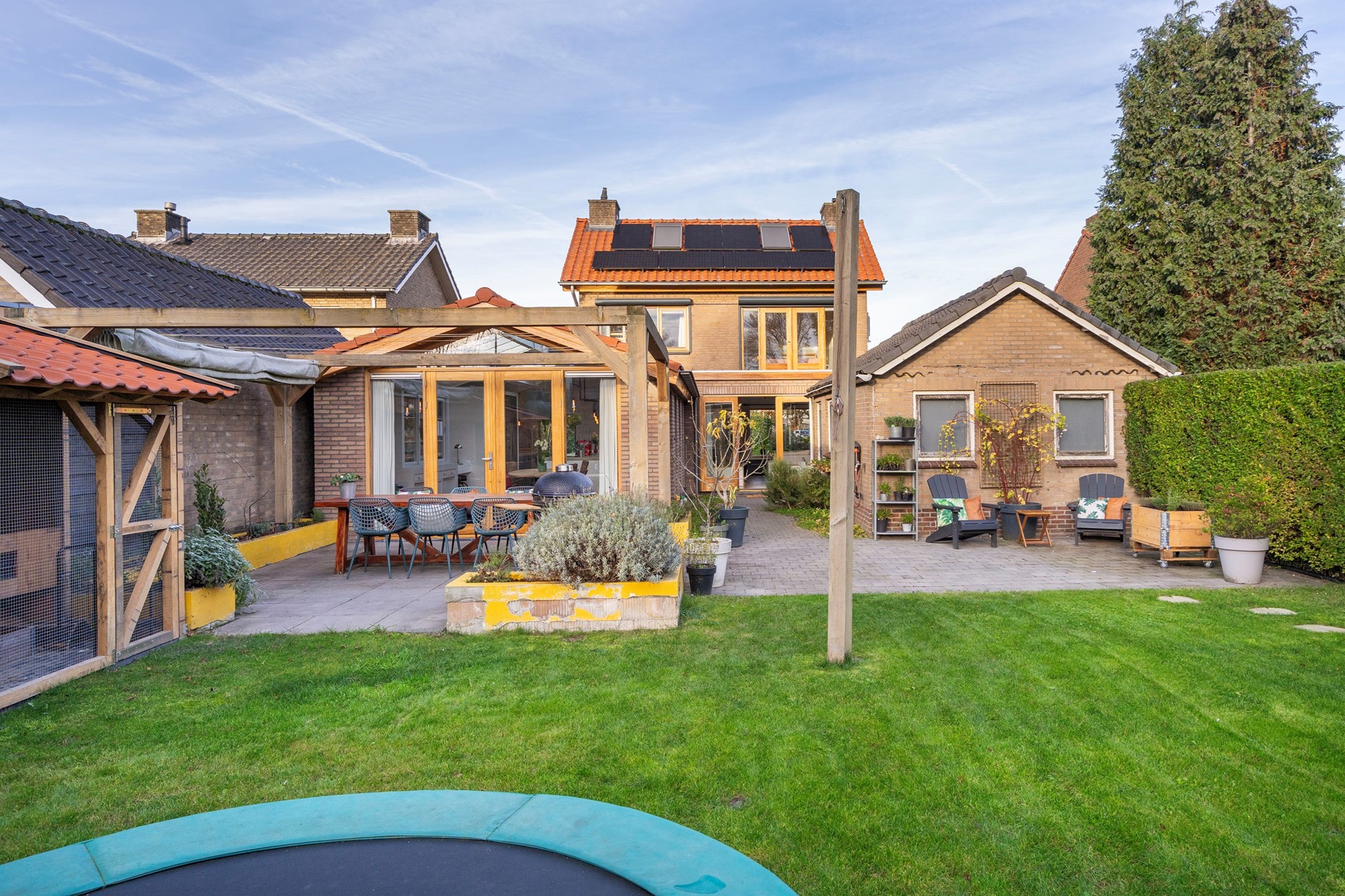 De diepe en brede tuin op het zuiden is een plek van rust en privacy. Met weinig inkijk van de buren kun je hier ongestoord genieten van de zon. Het tuinkantoor biedt een ideale werkplek, los van het huis, zodat je in alle rust kunt werken. En dan is er nog de stenen schuur, die met wat liefde omgetoverd kan worden tot een prachtig tuinhuis of een plek voor al je klussen.