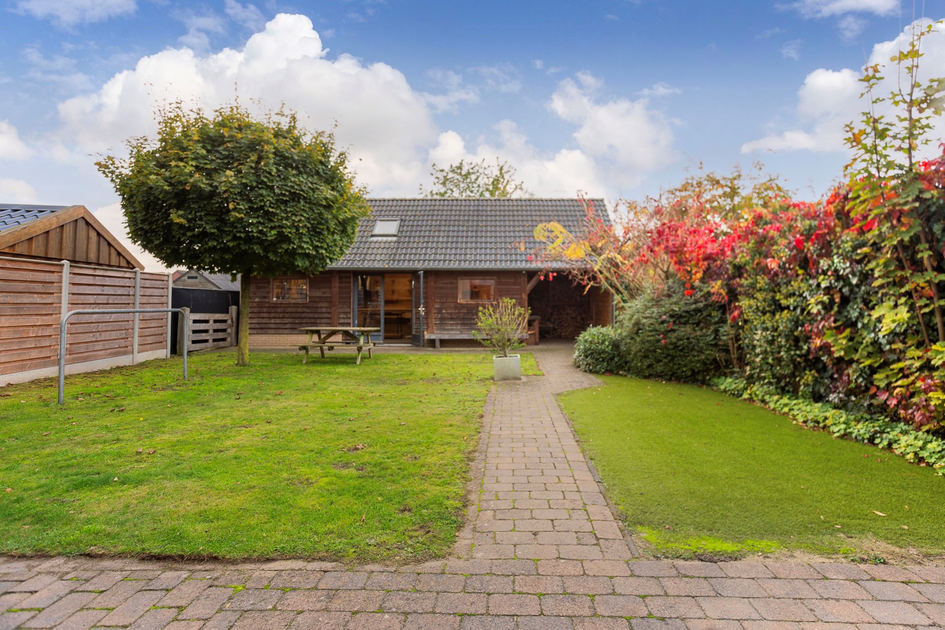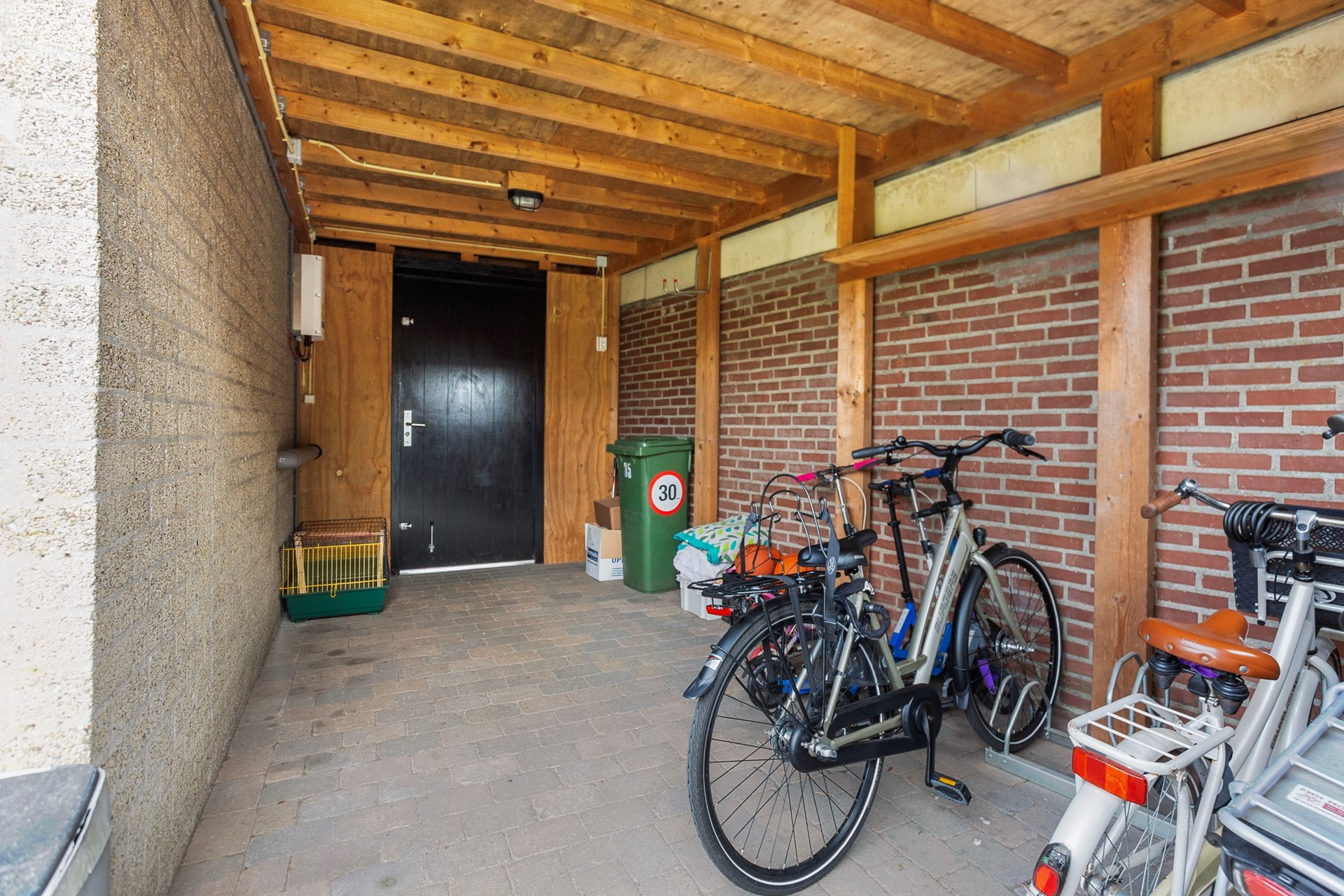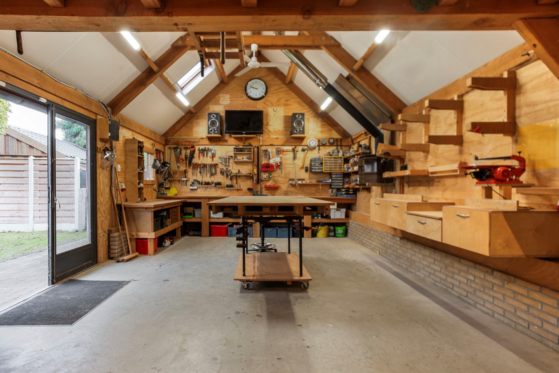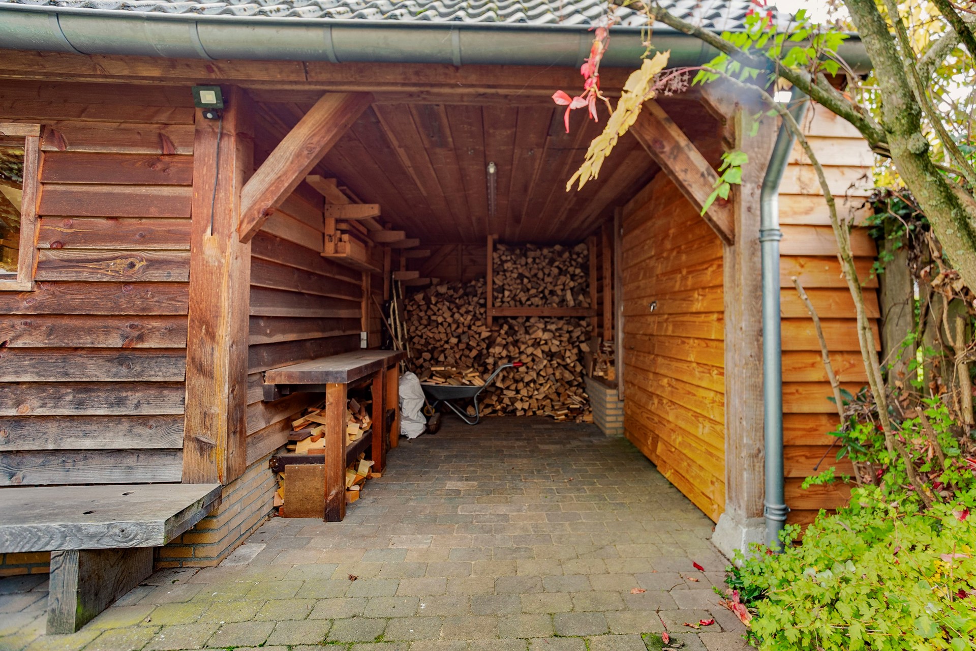 De achtertuin is een waar genot voor tuinliefhebbers. Met een oppervlakte van 242 m² is er genoeg ruimte voor kinderen om te spelen, voor een moestuin of om gewoon te relaxen. De grote houten schuur biedt talloze mogelijkheden, van kantoor aan huis, tot hobbyruimte of werkplaats. De oprit aan de voorzijde biedt plaats aan twee auto's, wat parkeren op eigen terrein mogelijk maakt. Naast het huis is een handige overdekte achterom, waar je je fietsen neer kunt zetten.