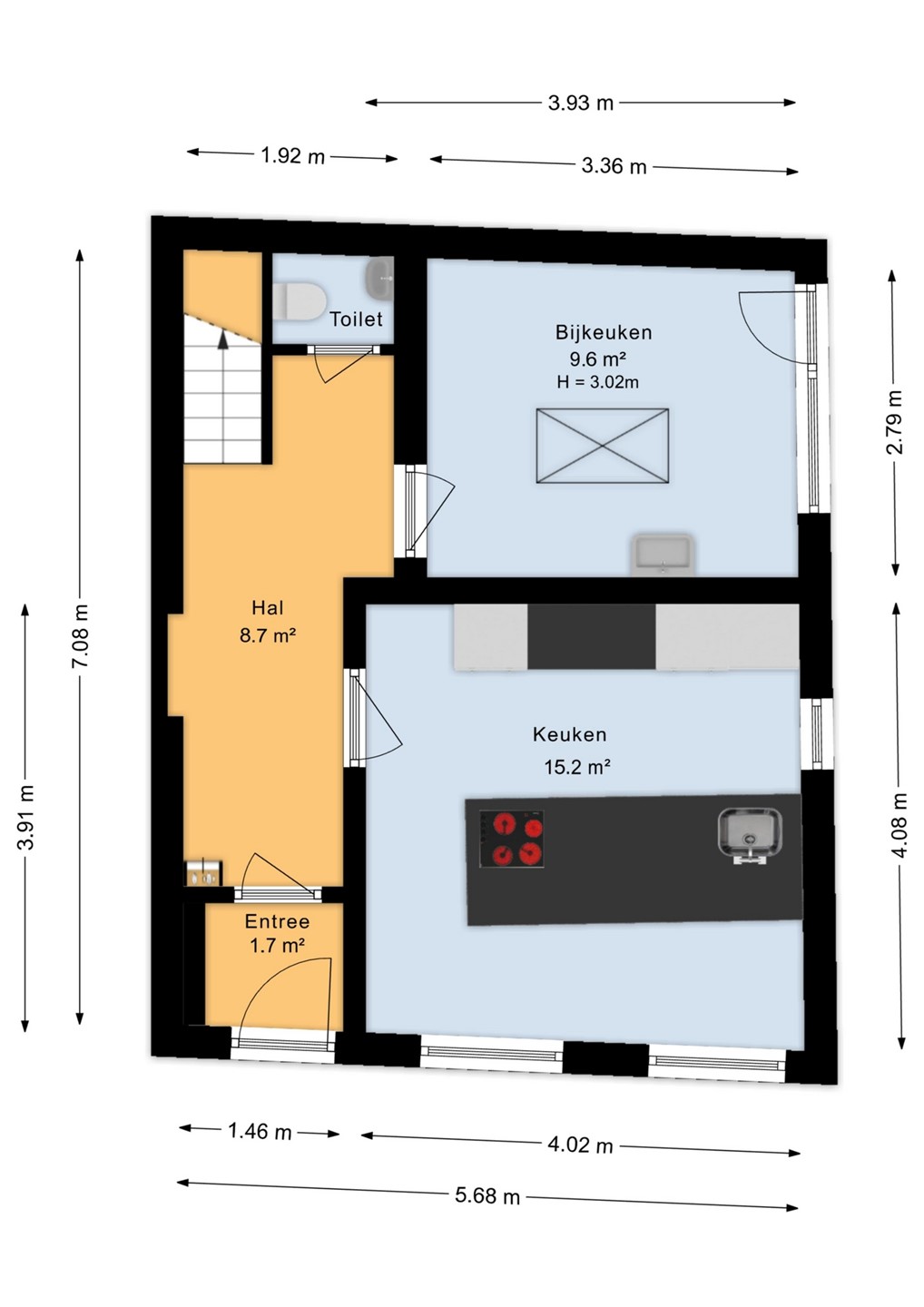 Op de begane grond zijn een toiletruimte en een praktische bijkeuken aanwezig. Daarnaast is er een studeerkamer op de eerste verdieping die ook heel geschikt is als thuiswerkplek of hobbyruimte. Bij de slaapkamers op de tweede verdieping is de ruime badkamer, die van alle gemakken is voorzien. Zo past het huis zich makkelijk aan jouw leven aan.