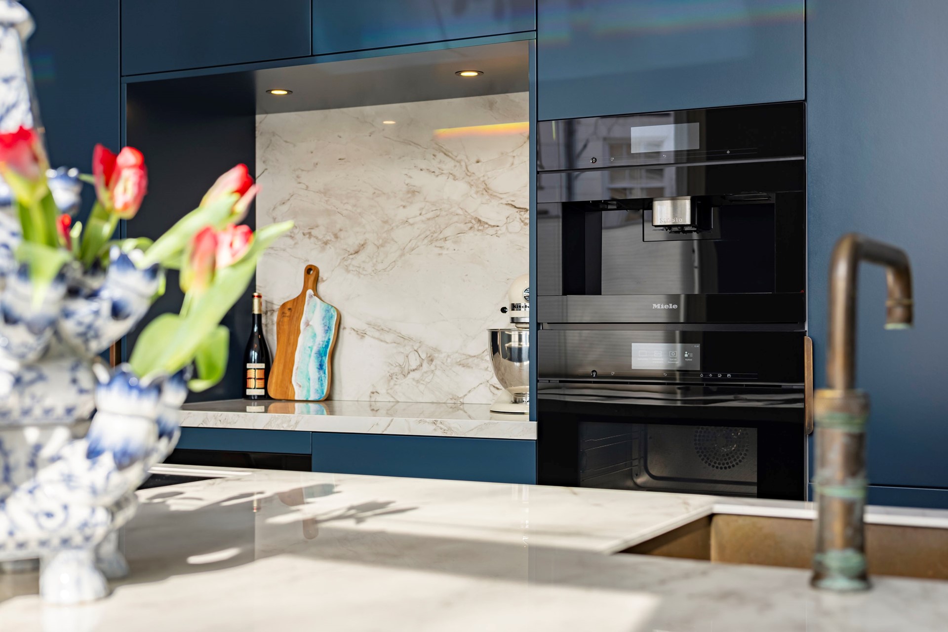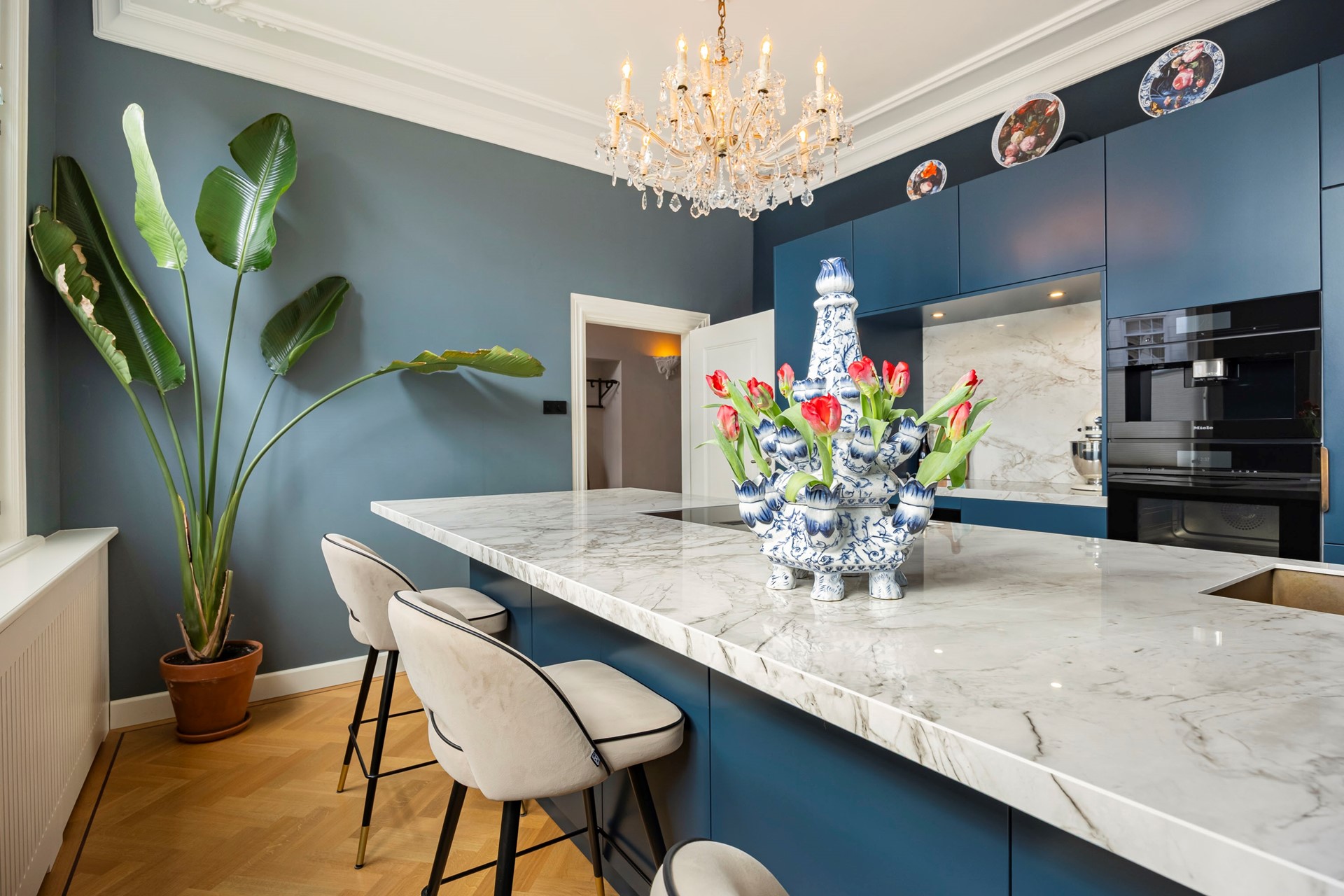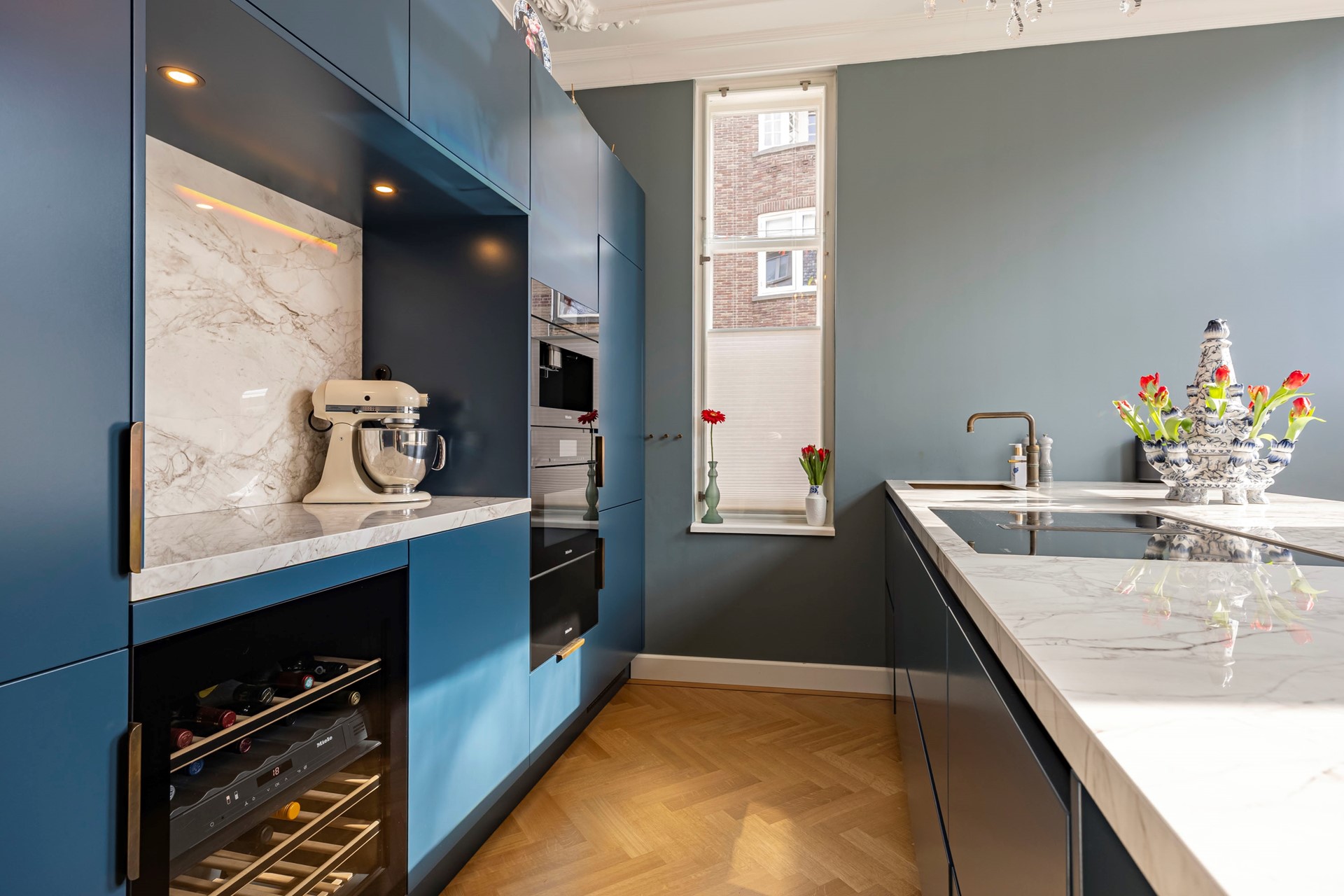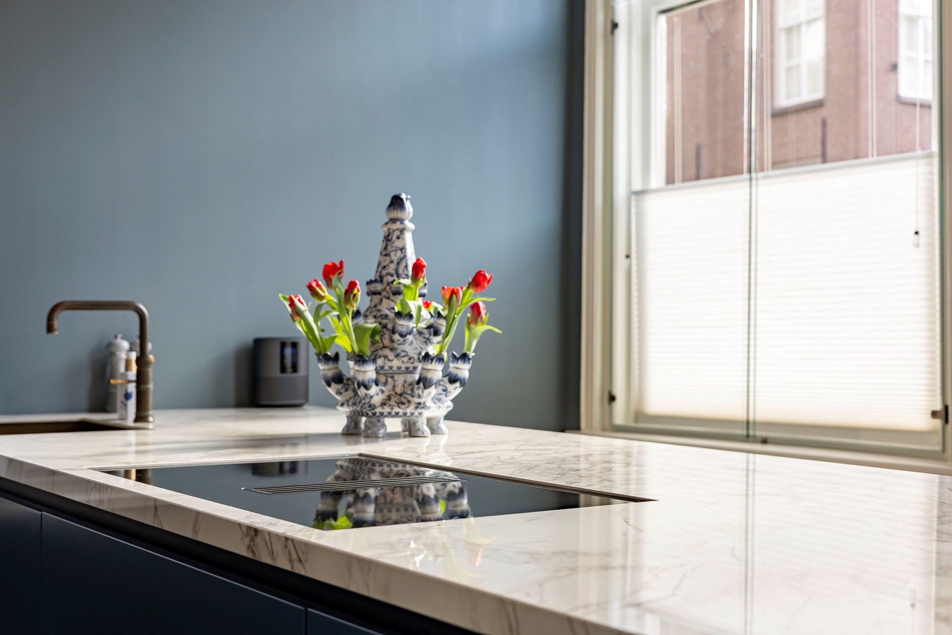 De woonkeuken is echt een plek om samen te zijn. Je kookt hier terwijl vrienden of familie aanschuiven voor een goed gesprek en een glas wijn uit de klimaatkast. Het uitzicht op de markt met de historische waterpomp maakt deze ruimte extra bijzonder. De afwerking is luxe en verzorgd, met onder andere een ingebouwde koffiemachine, combi-stoomoven en warmhoudlade/slowcooker, waardoor koken hier elke dag fijn voelt.