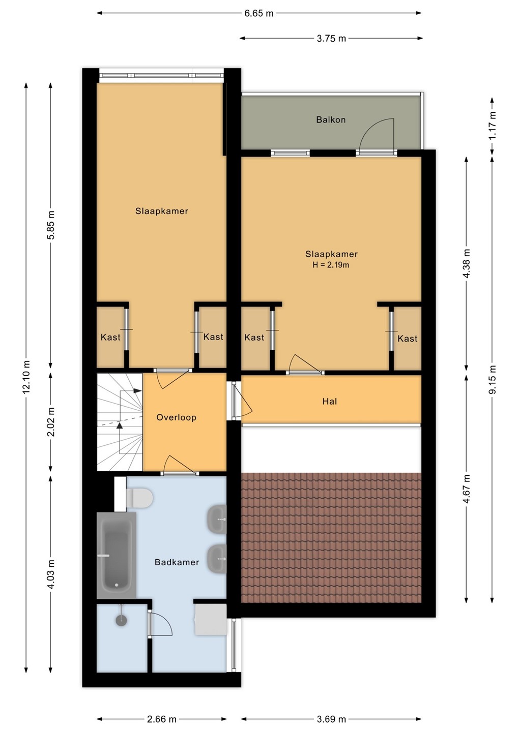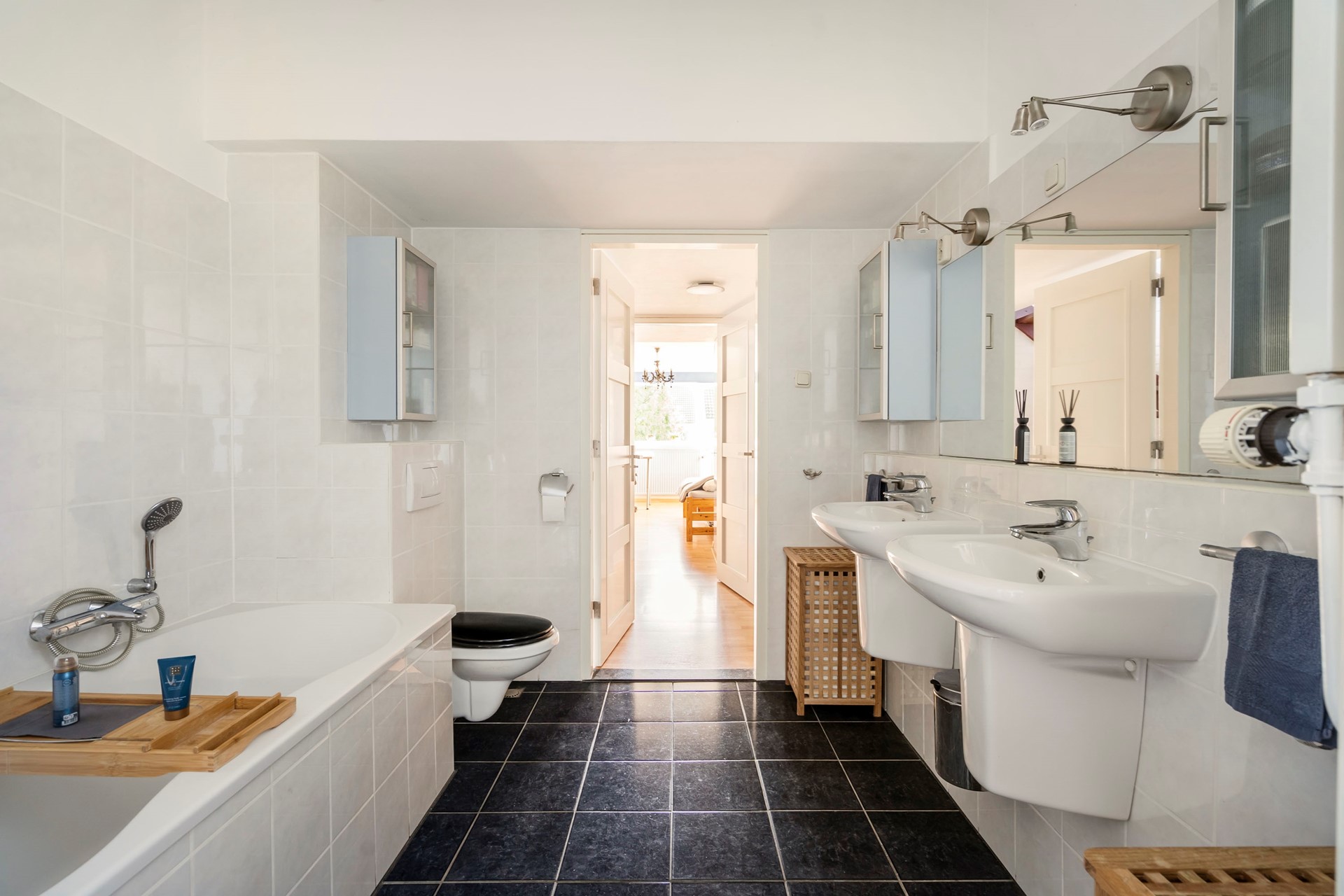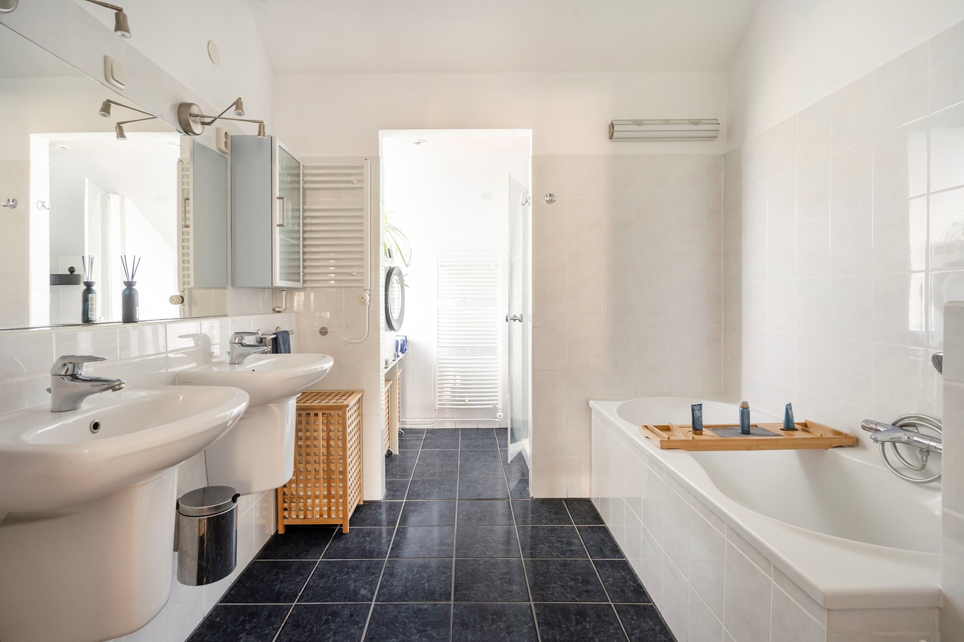 Op de eerste verdieping vind je twee slaapkamers, beide voorzien van laminaat. De kamers zijn licht en ruim, perfect voor een ouderslaapkamer, kinderkamer of logeerkamer. De grote badkamer is praktisch ingericht, met alles wat je nodig hebt voor een ontspannen start van de dag: een ligbad, douche, toilet en een dubbele wastafel. De vide geeft deze verdieping een speels karakter.