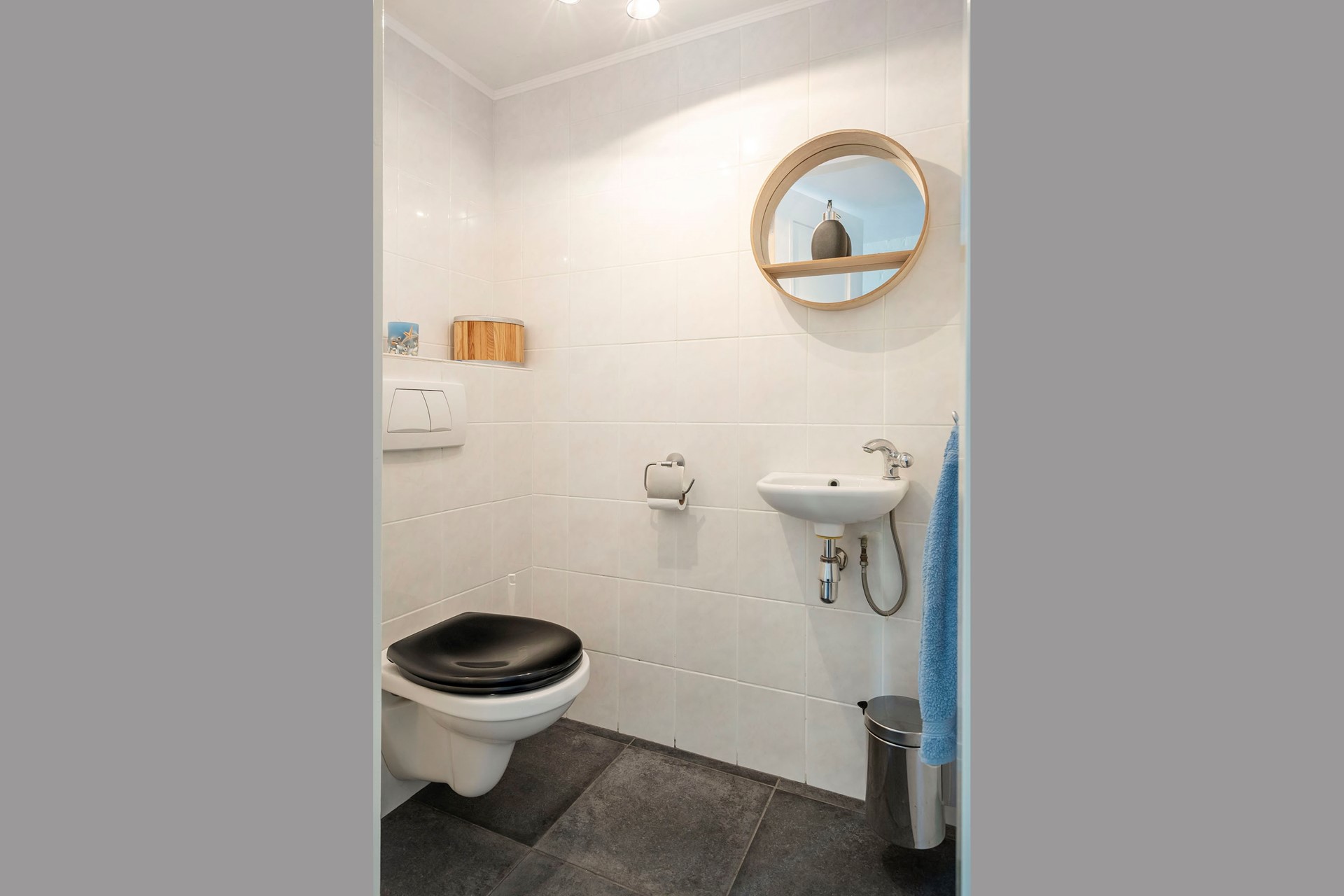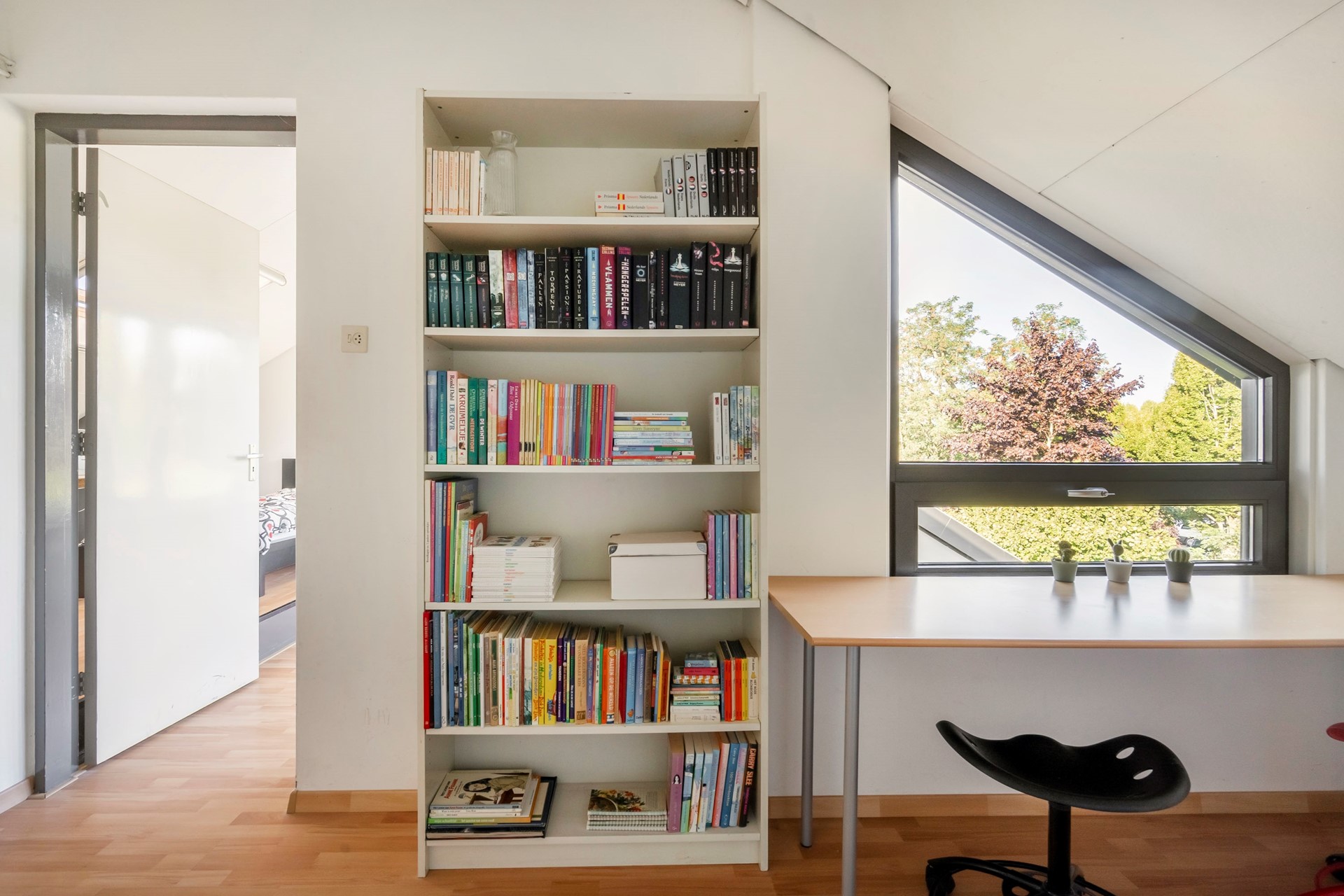 Aan de voorkant van het huis, direct bij binnenkomst links, is een handige werkkamer. Hier zit je rustig en apart van de woonkamer en keuken.