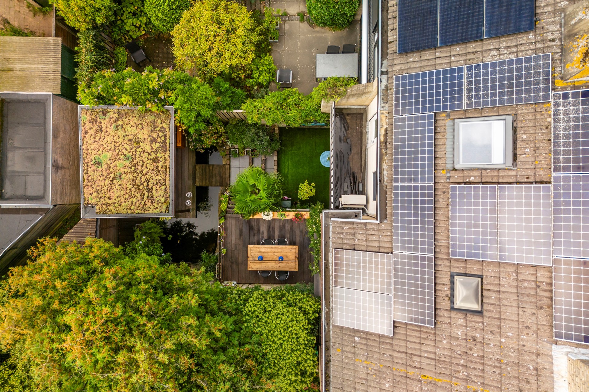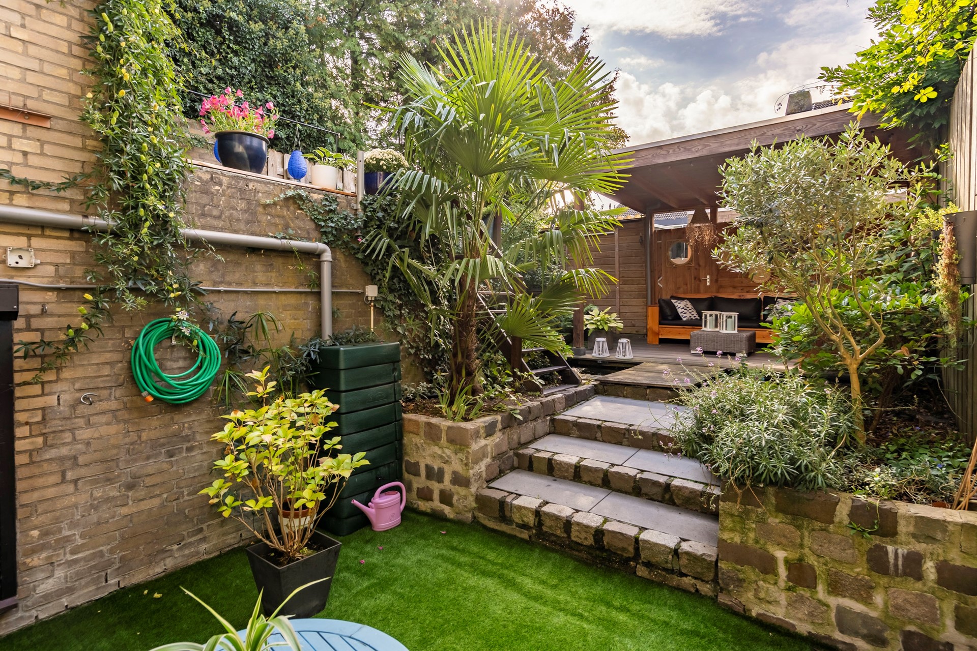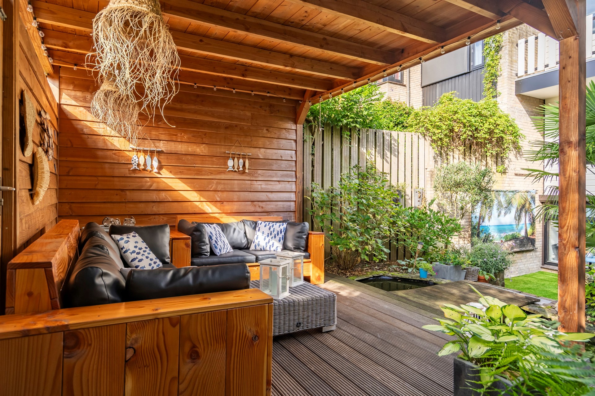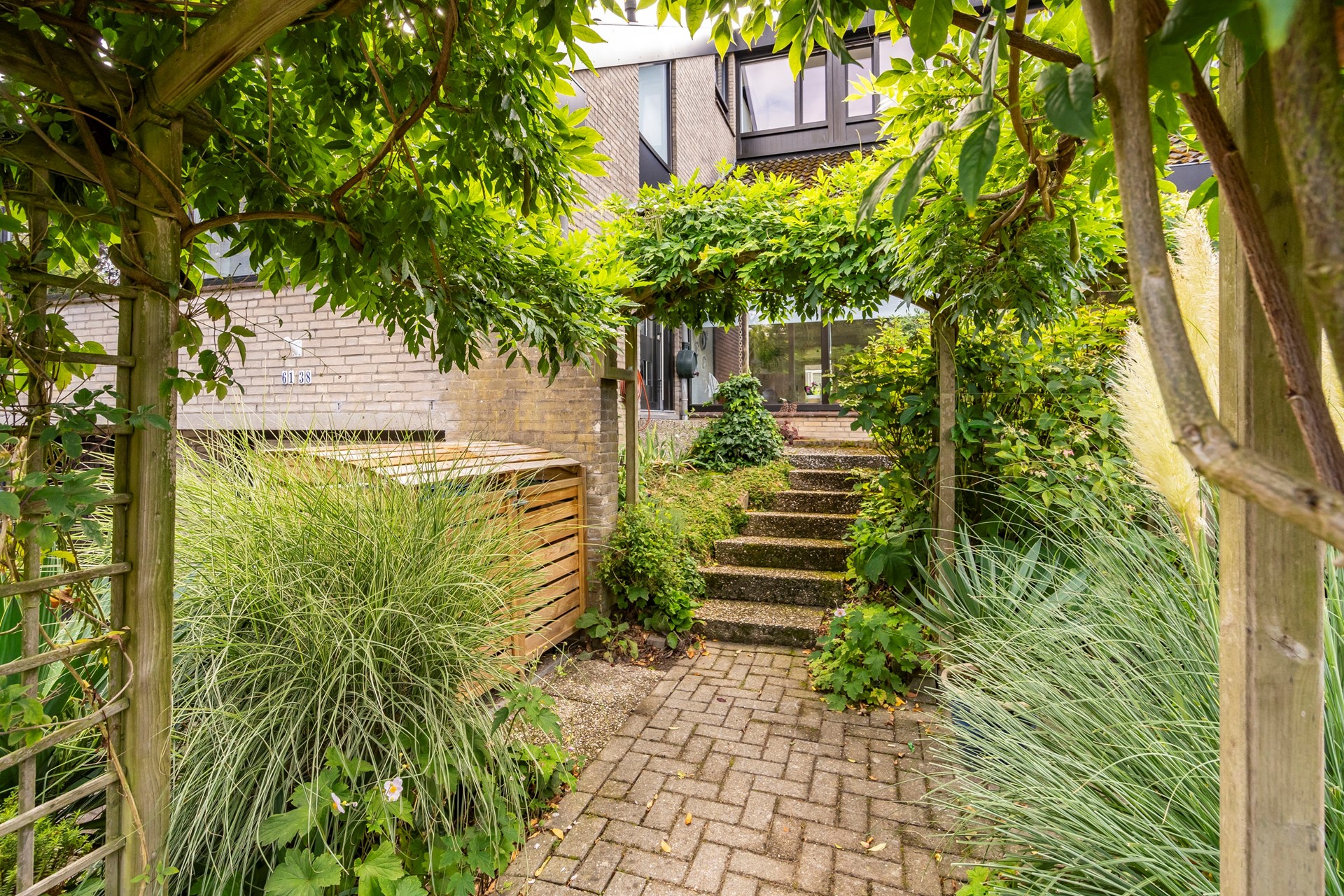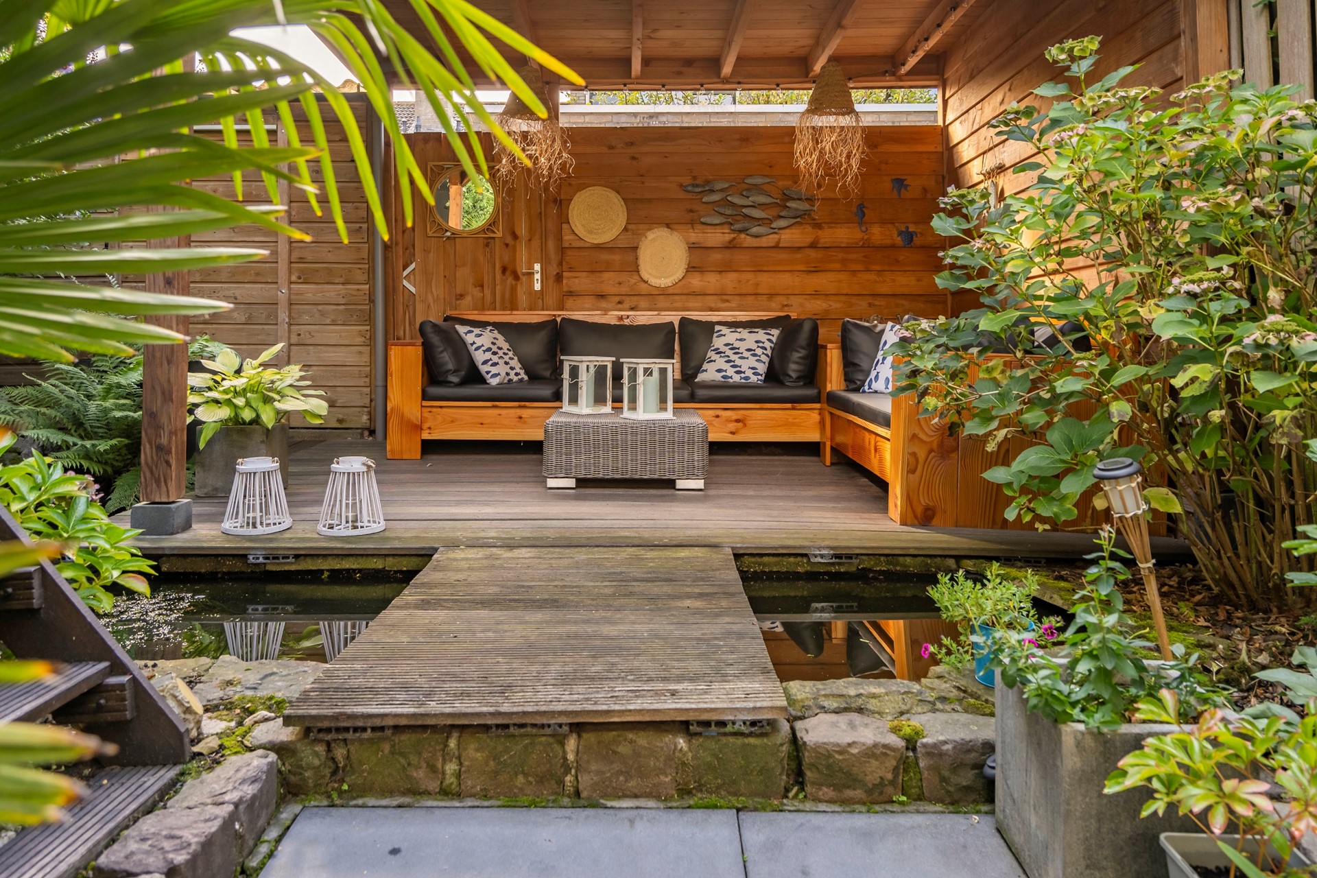 De tuin is een waar genot, met verschillende terrassen waar je altijd een plekje in de zon of schaduw kunt vinden. Mede door de overkapping zit je hier een groot deel van het jaar heerlijk buiten. En met de achterom is de tuin ook nog eens makkelijk bereikbaar. Aan de voorzijde biedt een eigen oprit plaats aan twee auto's.