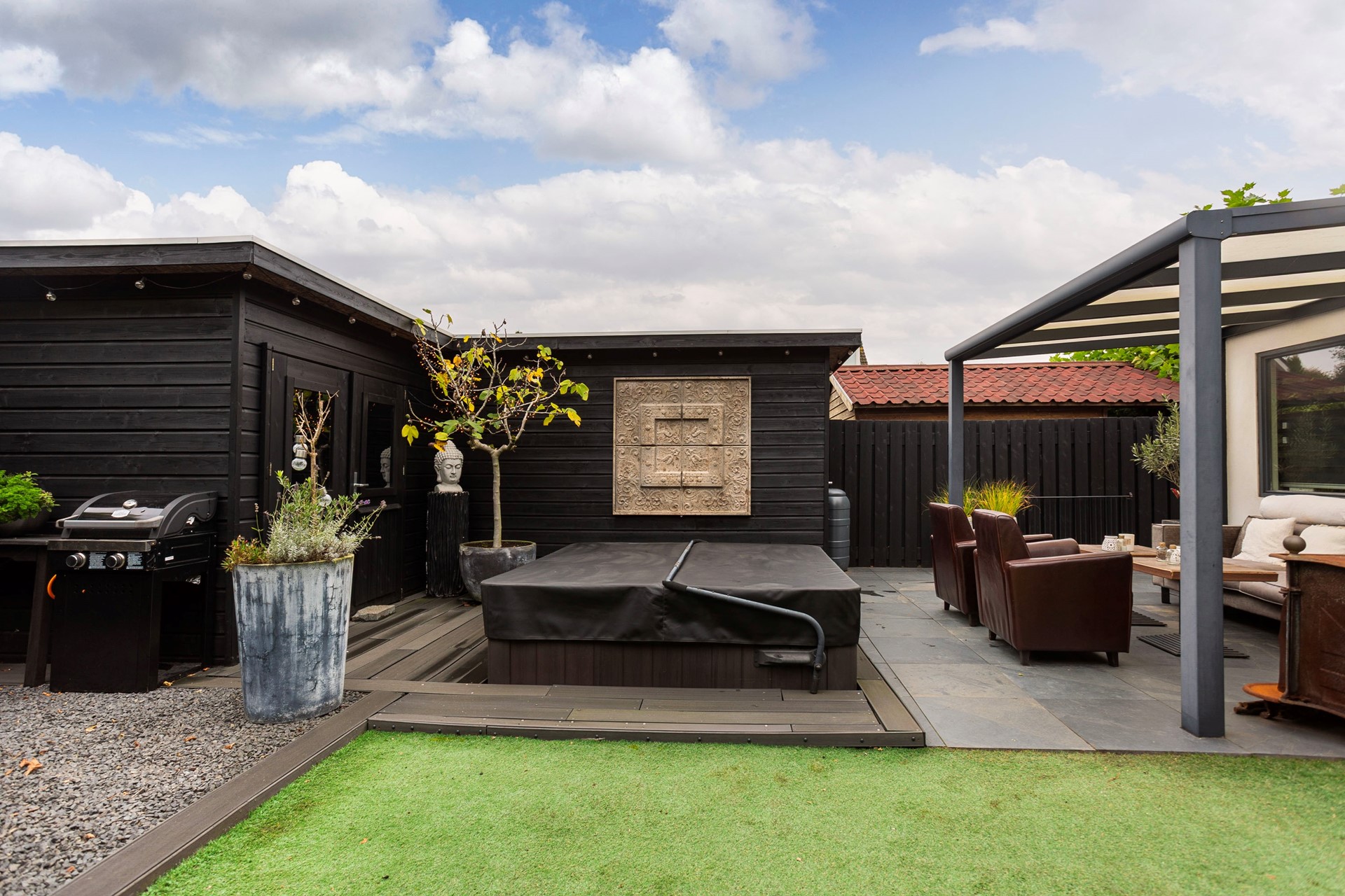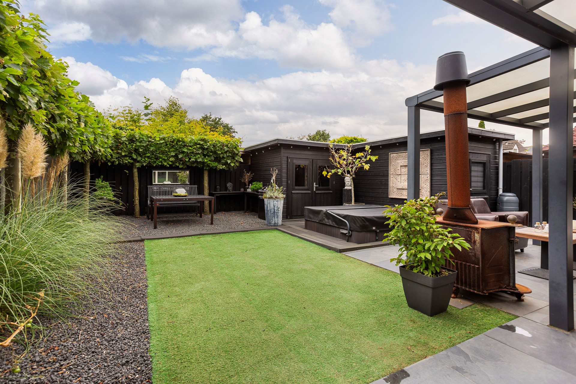 Bij binnenkomst voel je direct de warmte en gezelligheid die deze woning uitstraalt. De woonkamer en keuken worden op een stijlvolle manier gescheiden door een luxe doorkijkhaard. Perfect voor sfeervolle avonden met vrienden of familie. De begane grond is voorzien van vloerverwarming, wat zorgt voor extra comfort. De luxe keuken is en praktisch ingericht, ideaal voor het bereiden van heerlijke maaltijden. Vanuit de woonkamer stap je zo de verzorgde achtertuin in, waar je kunt ontspannen onder de overkapping of genieten van de jacuzzi. Het tuinhuis is al voorbereid voor een complete wellness-ervaring.